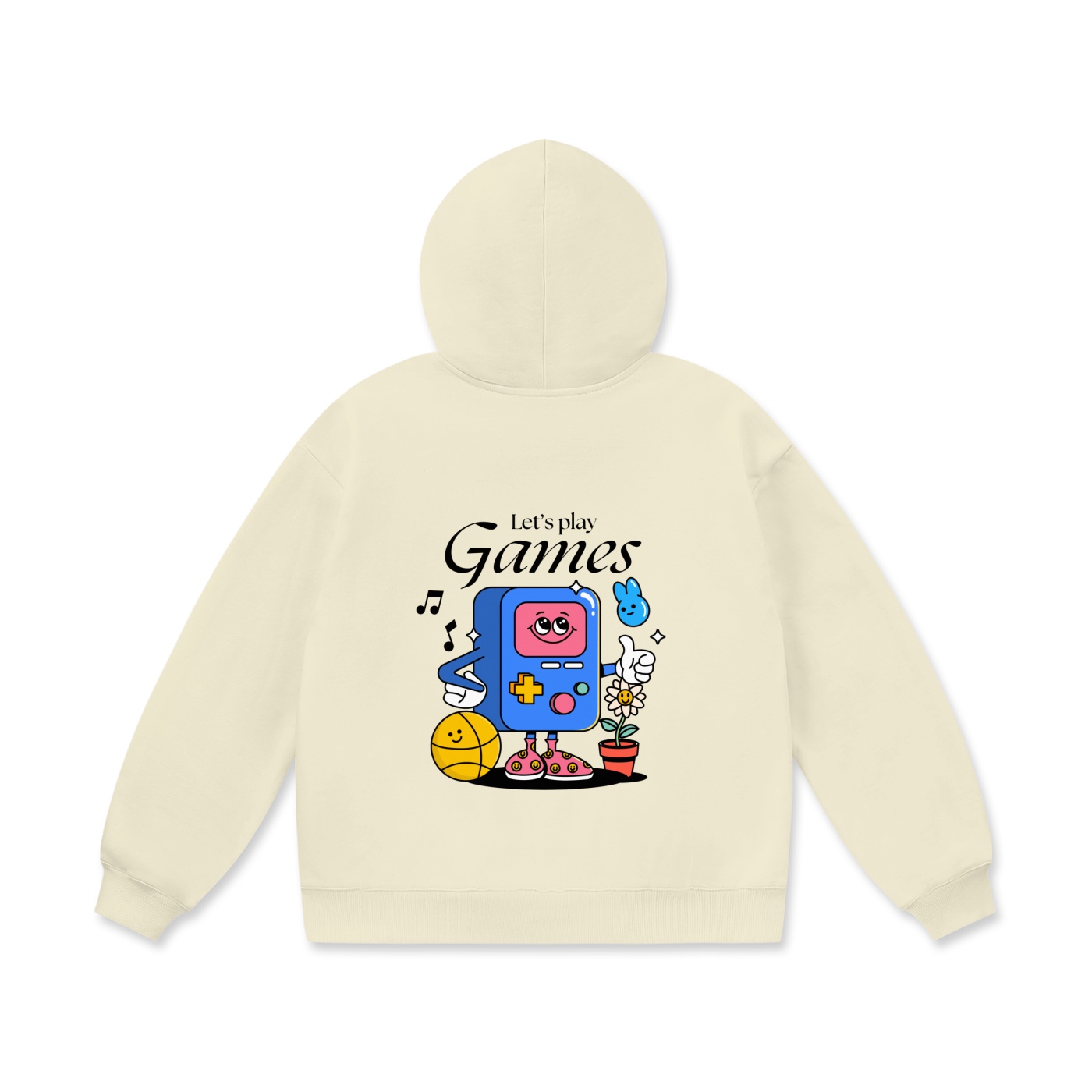 Retro Vibes: Featuring our “Let’s Play Games” artwork on the back, with a signature icon on the chest.